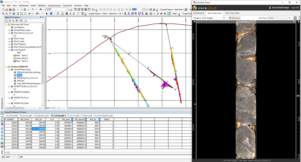 As an outcome of the partnership, new connectivity available in Geosoft’s 9.1 software update allows geoscientists to spatially link directly from plan maps, section maps and drill hole databases, to core imagery and other data products stored in Coreshed.
