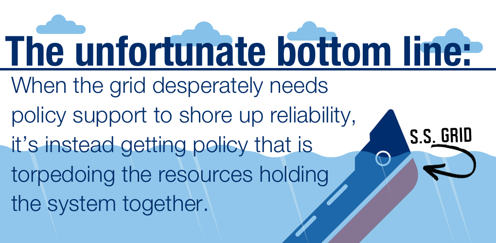 That is the unfortunate bottom line: When the grid desperately needs policy support to shore up reliability, it’s instead getting policy that is torpedoing the resources holding the system together.