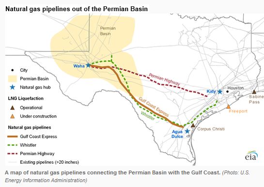 The Whistler’s development came amid ongoing construction work on the Permian Highway Pipeline owned by Kinder Morgan and the Gulf Coast Express line, each with about 2 billion cubic per day of capacity, that would connect the Permian with the Gulf Coast’s natural gas markets.