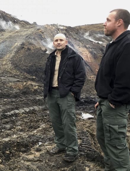 Rob Rice, of the West Virginia Office of Abandoned Mine Lands and Reclamation and planner Jonathan Knight at abandoned mine.