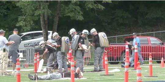 Nine mine rescue teams competed for top honors in a three-day mine safety event held on a high school football field in Hazard, Ky., during the week of June 13, 2017, WYMT Mountain News reports.The event was put on by the Mine Safety and Health Administration (MSHA) and the Division of Mine Safety.