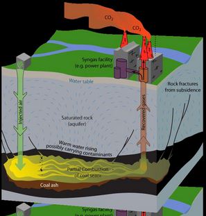 The UCG gas extraction involves injection of oxidants into underground coal deposits to heat them to temperatures, enabling gas to escape.