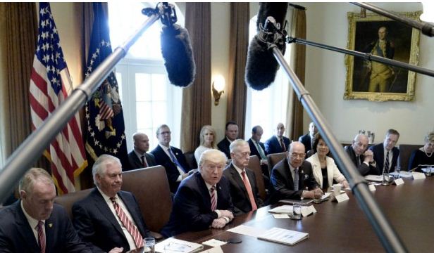 “There are a couple of major stories today in the newspapers about the mines that are opening and the miners are going back to work,” Trump said at the beginning of his first-ever White House Cabinet meeting Monday.