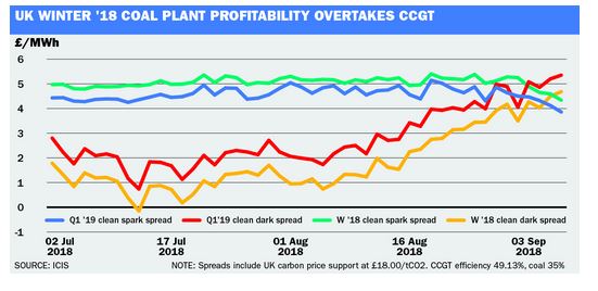 Near-ten year highs on winter NBP natural gas prices have pushed coal plant back into contention to take a significant share of the UK’s generation mix over the coming winter.