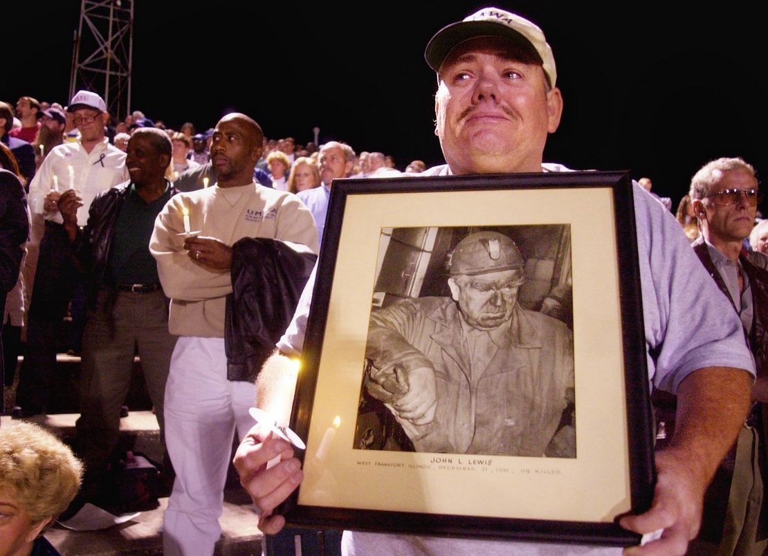 James Walker Hammond, holding a photo of John Lewis, a founding member of the United Mine Workers of America.